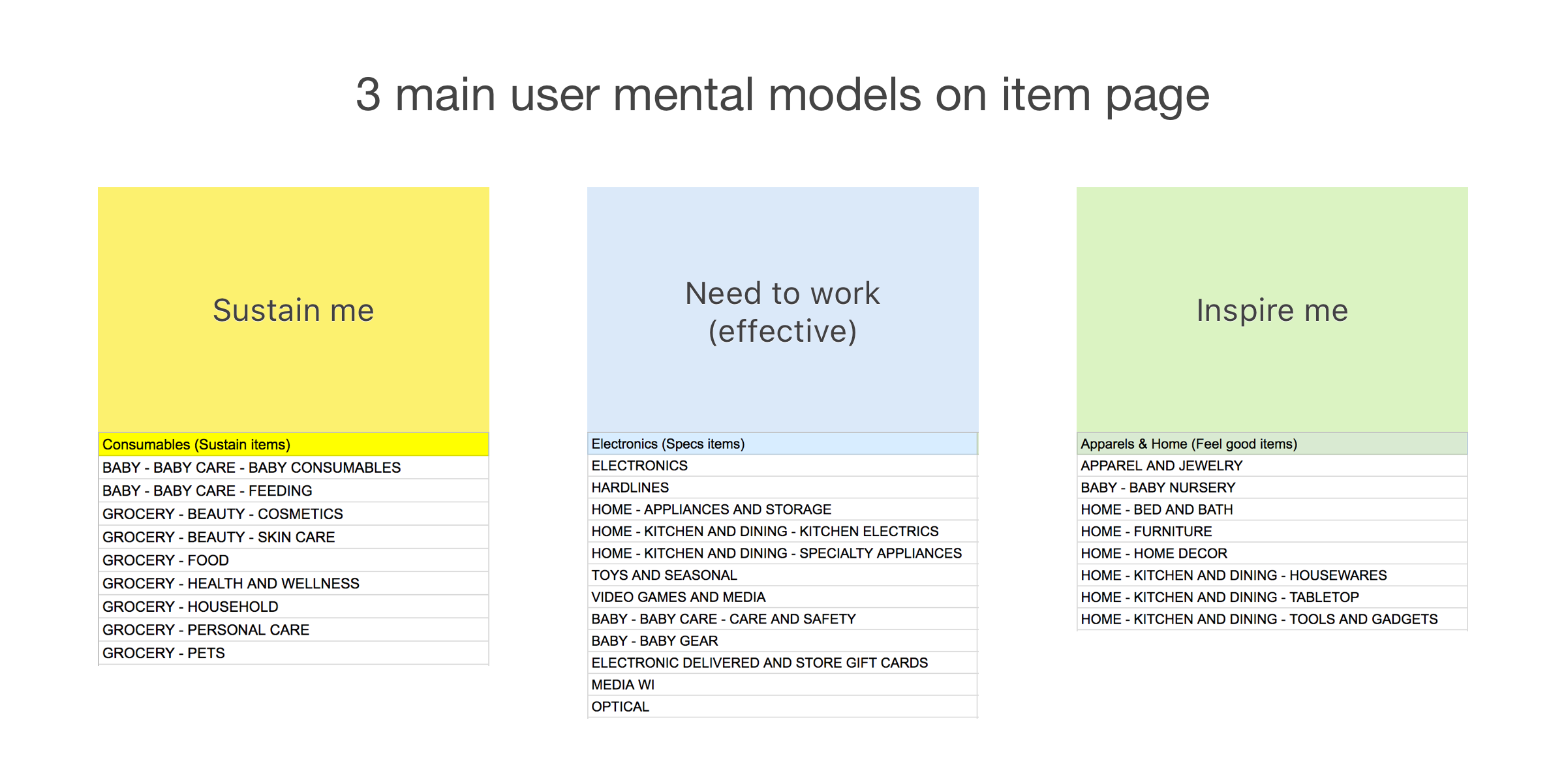3. Customers wanted to see similar levels of consolidation regardless of category; however the UI may be adjusted to facilitate shopping on differentiated experiences.