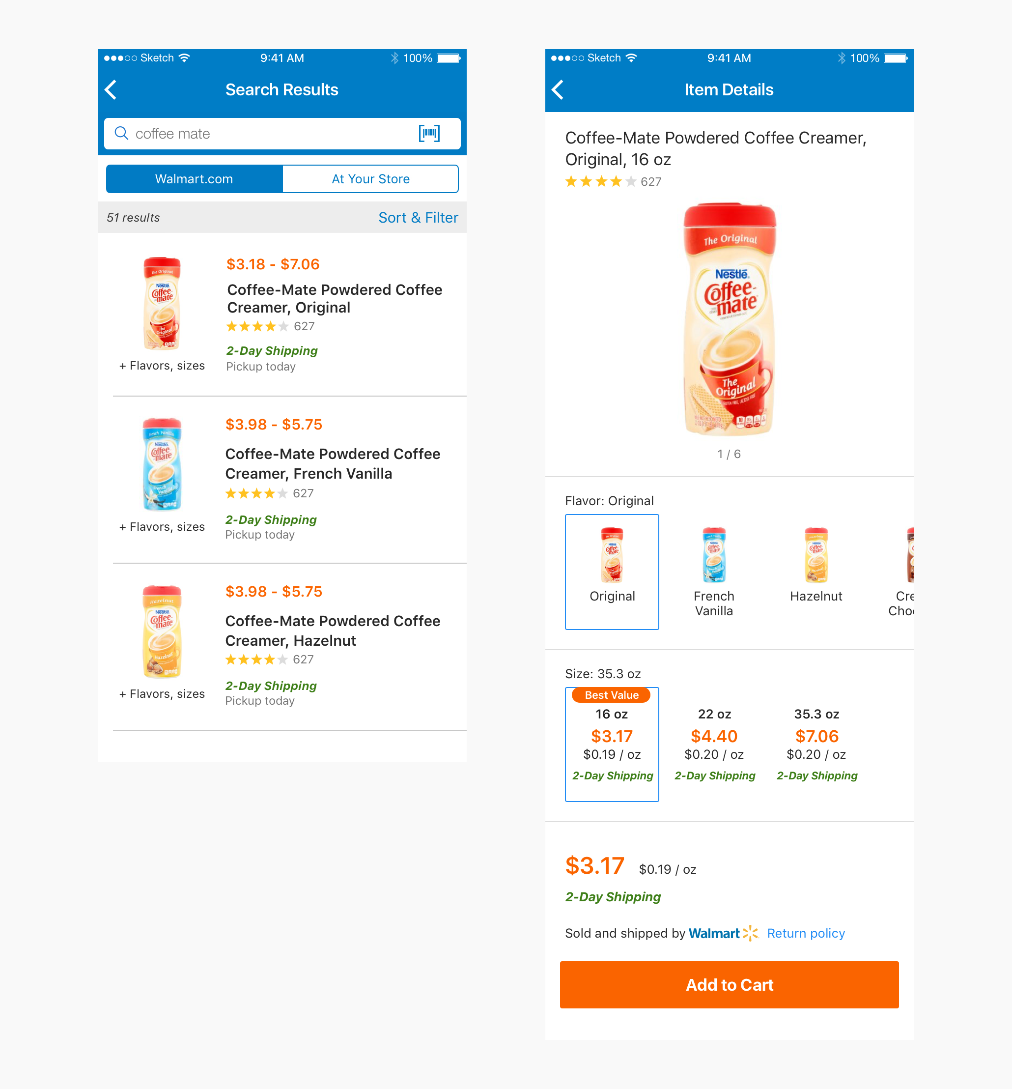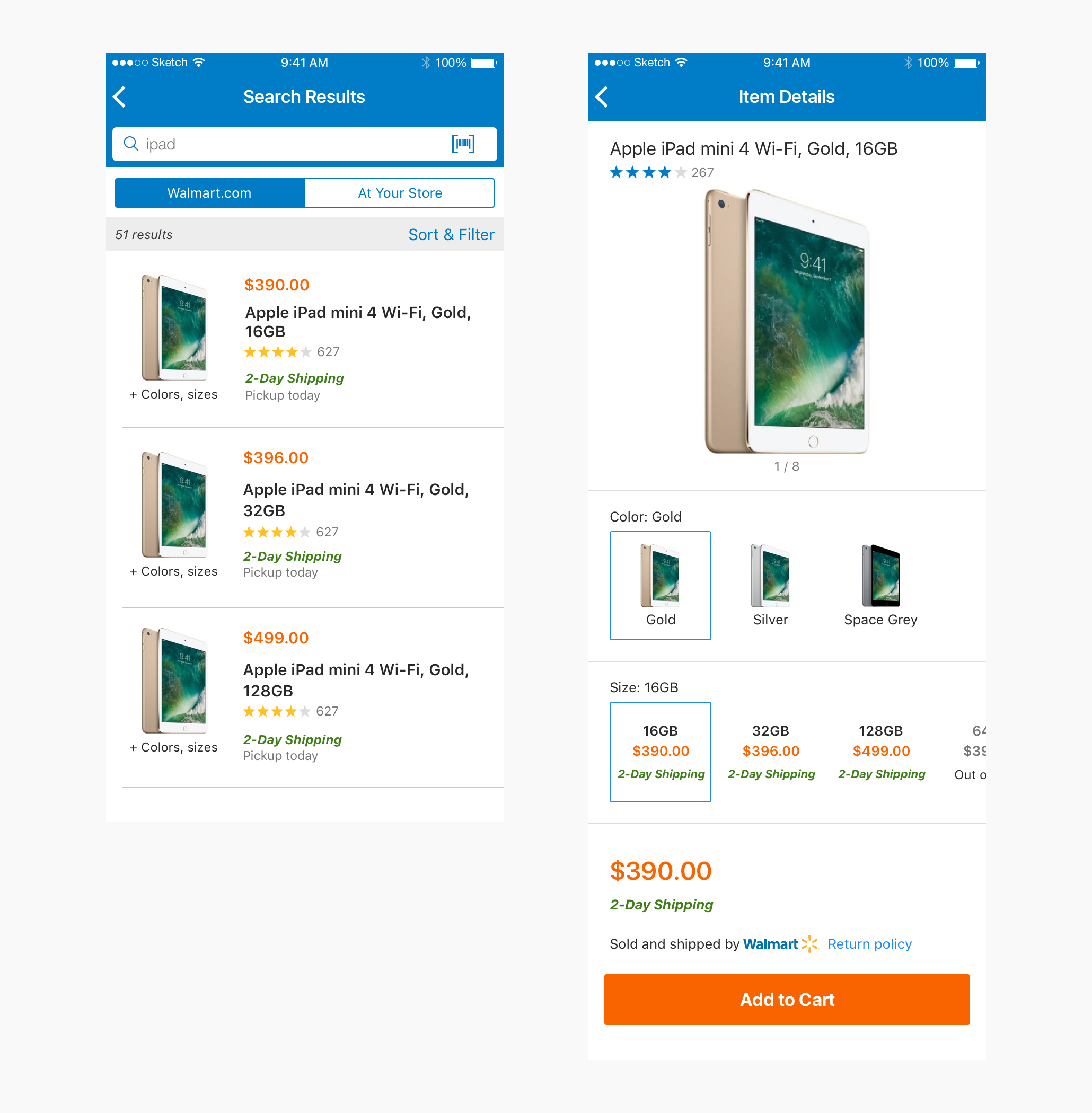We are designing the shopping experience from search results to item details page.