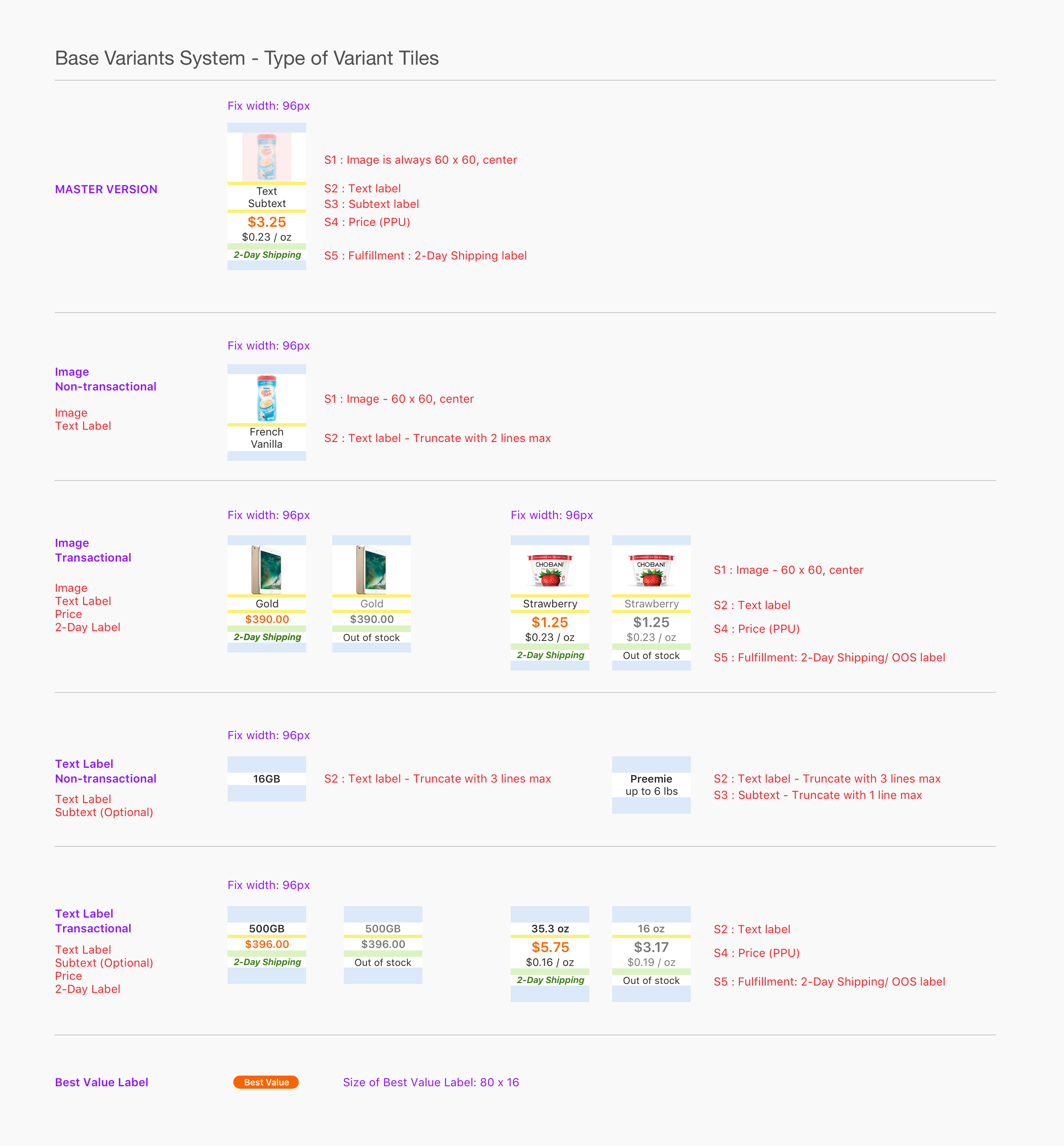 • •Highlight variants that are Best Value with label